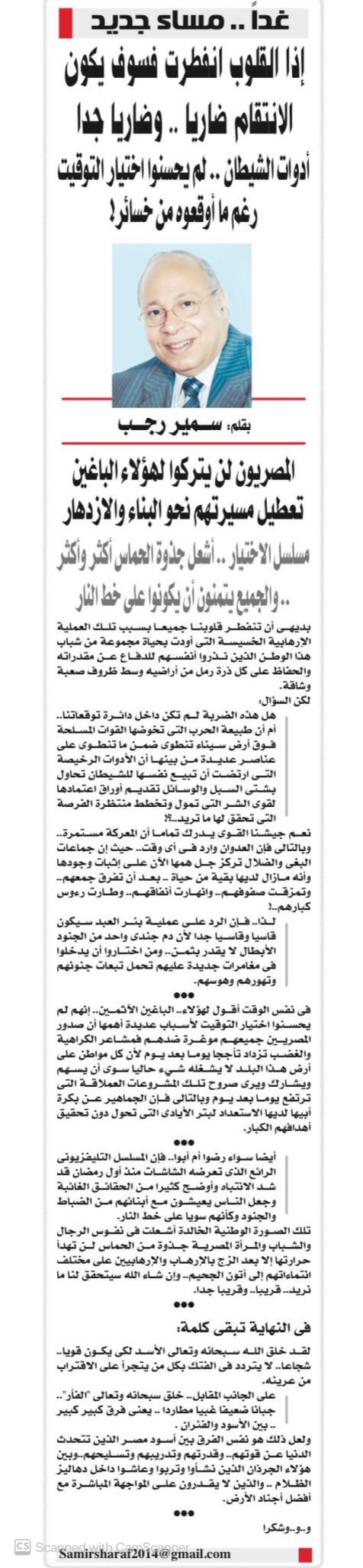 مقال سمير رجب "غدا مساء جديد"بجريدة المساء