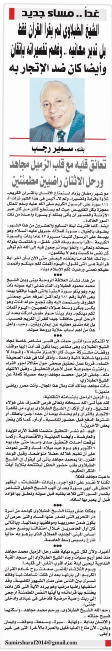 مقال سمير رجب " غدا مساء جديد " بجريدة المساء