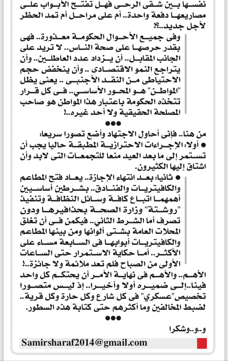 مقال سمير رجب " غدا مساء جديد " بجريدة المساء