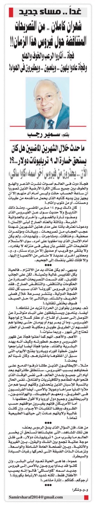مقال سمير رجب " غدا مساء جديد بجريدة المساء