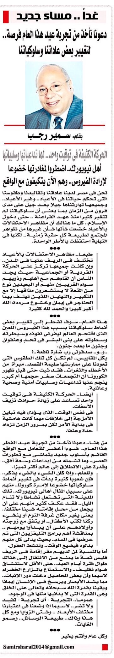 هذا العام.. سوف نضطر إلى تغيير بعض أنماط سلوكياتنا بسبب هذا الفيروس اللعين الذي اقتحم العالم ليفرض نفوذه وسيطرته وسطوته على بني البشر في تحدٍ وعنفوان وجنون ما بعدهجنون.