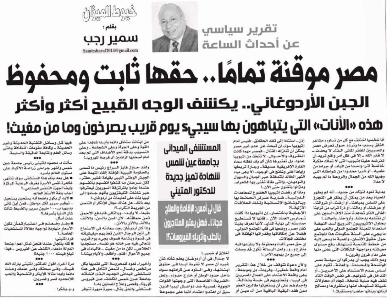 بداية نعود لنؤكد من جديد.. أنه لم يظهر للحياة بعد من يمكن أن يفكر في التجرؤ على المساس بمياهنا.. أو أرضنا.. أو ثرواتنا.. أو عرضنا.. أو رمالنا.. أو ذرة تراب من ترابنا الغالي الذي تعاهدنا منذ آلاف السنين على أن نفتديه بدمائنا.. وأرواحنا.. وأموالنا..!