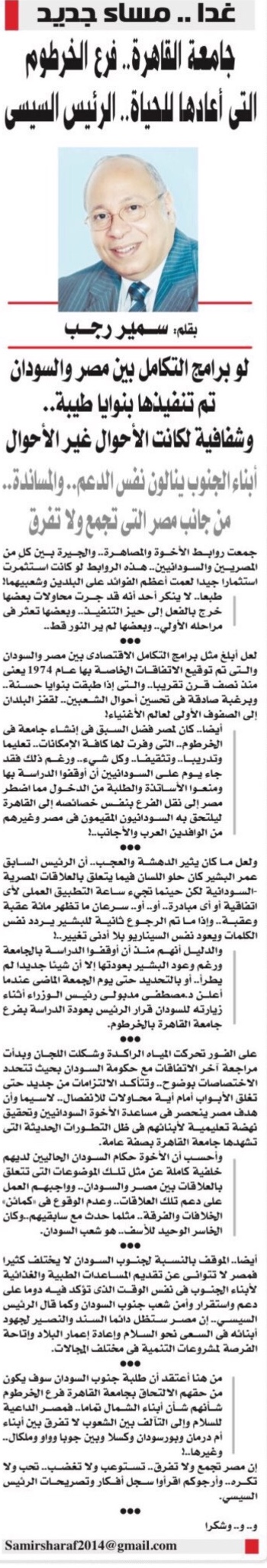 جمعت روابط الأخوة والمصاهرة.. والجيرة بين كلٍ من المصريين والسودانيين.. هذهالروابط لو كانت استثمرت استثمارا جيدا لعمت أعظم الفوائد على البلدين وشعبيهما..!
