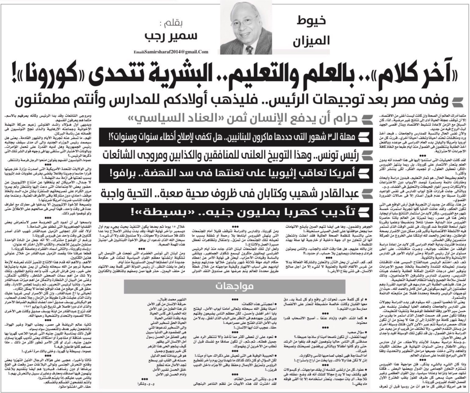 مقال سمير رجب " خيوط الميزان " بجريدة الجمهورية