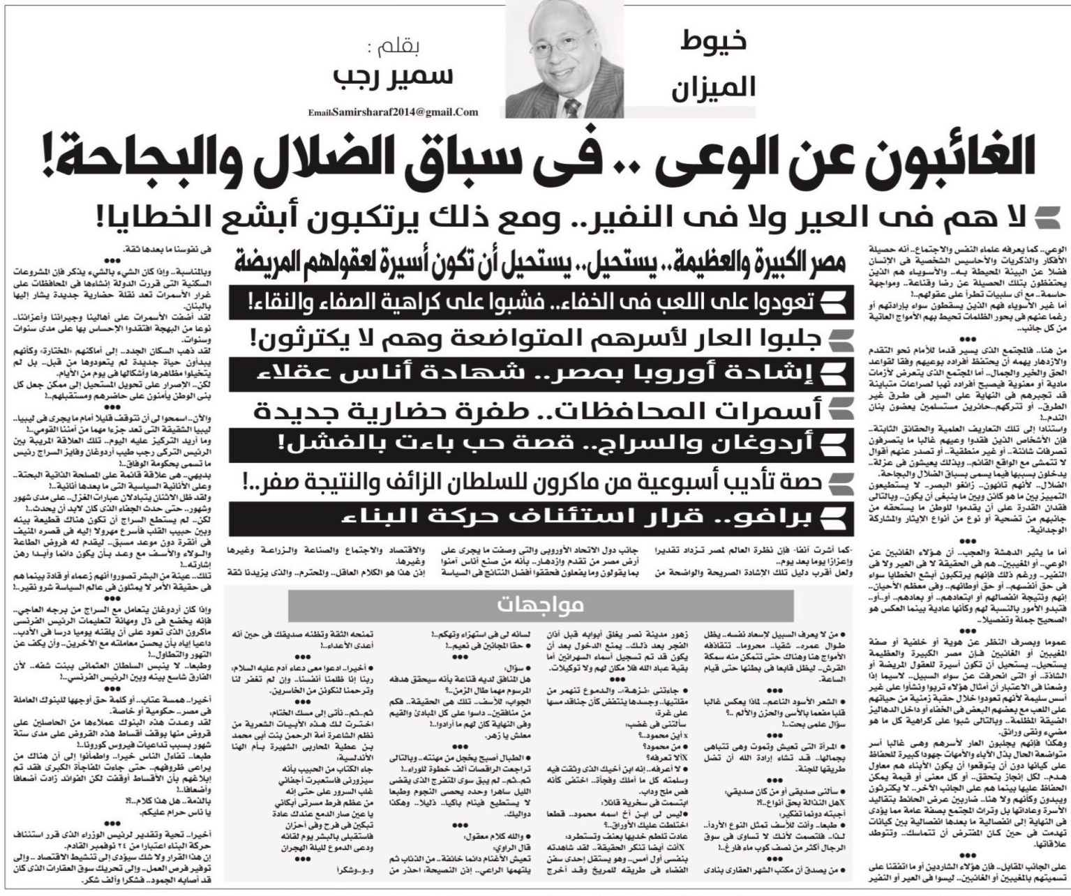 على الجانب المقابل.. فإن هؤلاء الشاردين أو ما اتفقنا على تسميتهم بالمغيبين أو الغائبين.. ليسوا في العير أو النفير –كما أشرت آنفا- فإن نظرة العالم لمصر تزداد تقديرا وإعزازا يوما بعد يوم..