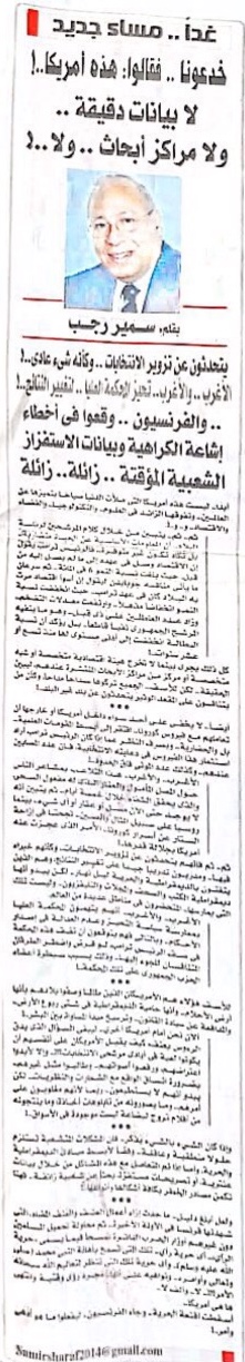 مقال سمير رجب "غدا مساء جديد"بجريدة المساء