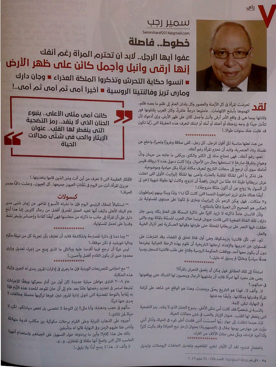 سمير رجب يكتب خطوط فاصلة وكبسولات بمجلة 7 أيام بتاريخ 24 مايو 2016