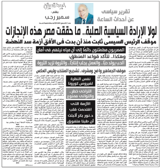 وإذا كان الشيء بالشيء يذكر فإن الإرادة السياسية المصرية هي التي حققنا بفضلها تلك الإنجازات العديدة التي تضيء سماء مصر في كل وقت وحين.