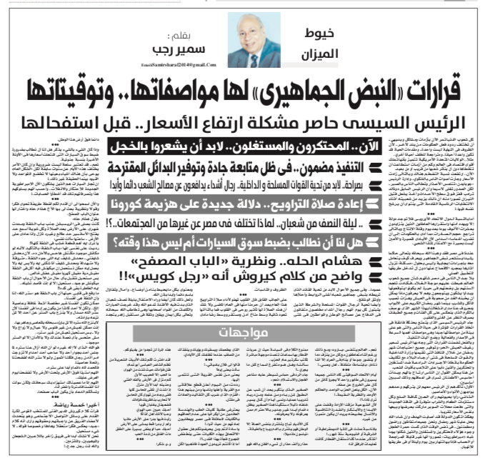 عندنا في مصر فقد وهبنا الله سبحانه وتعالى حاكما رشيدا يستشعر نبض الجماهير ويعرف كيف يتعامل معه بإجراءات إيجابية وليس بحلول "مسكنة" تزول آثارها بمجرد الإفصاح عنها دون أن تدخل طريقها للتطبيق العملي.