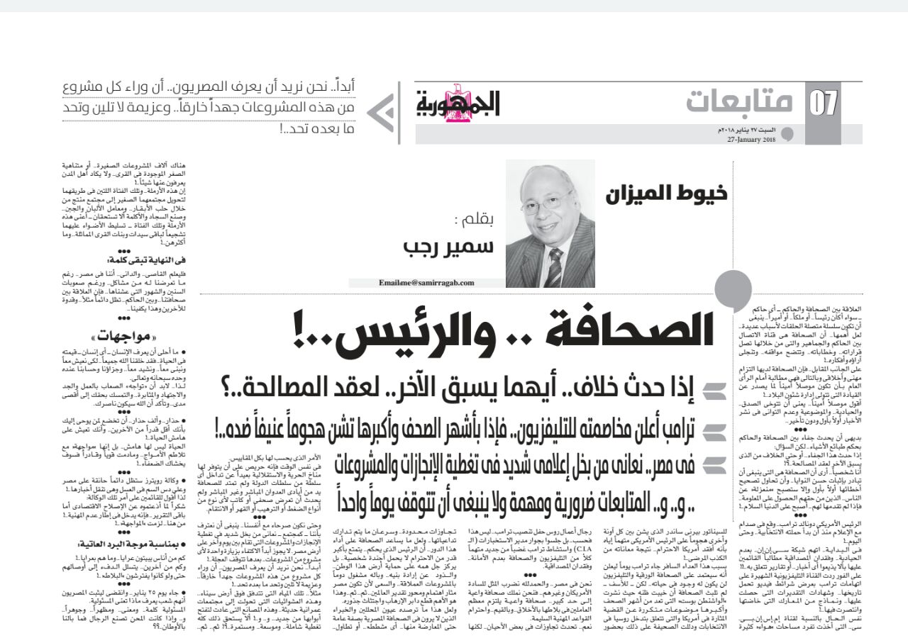 سمير رجب يكتب فى جريدة الجمهورية مقال بعنوان " الصحافة..والرئيس..!