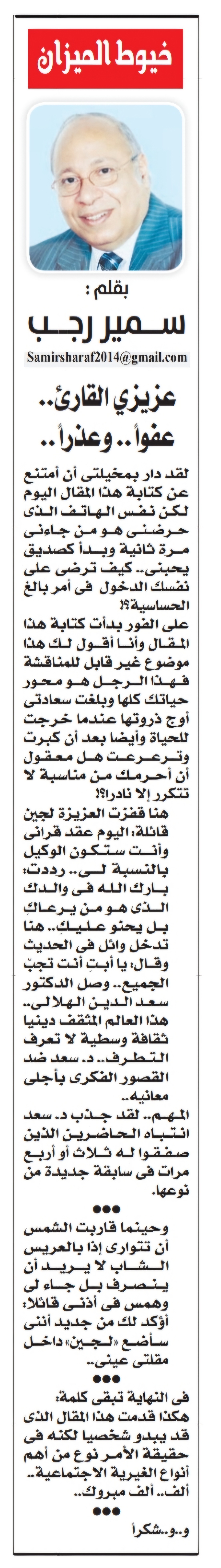 مقال سمير رجب "خيوط الميزان" بجريدة الجمهورية