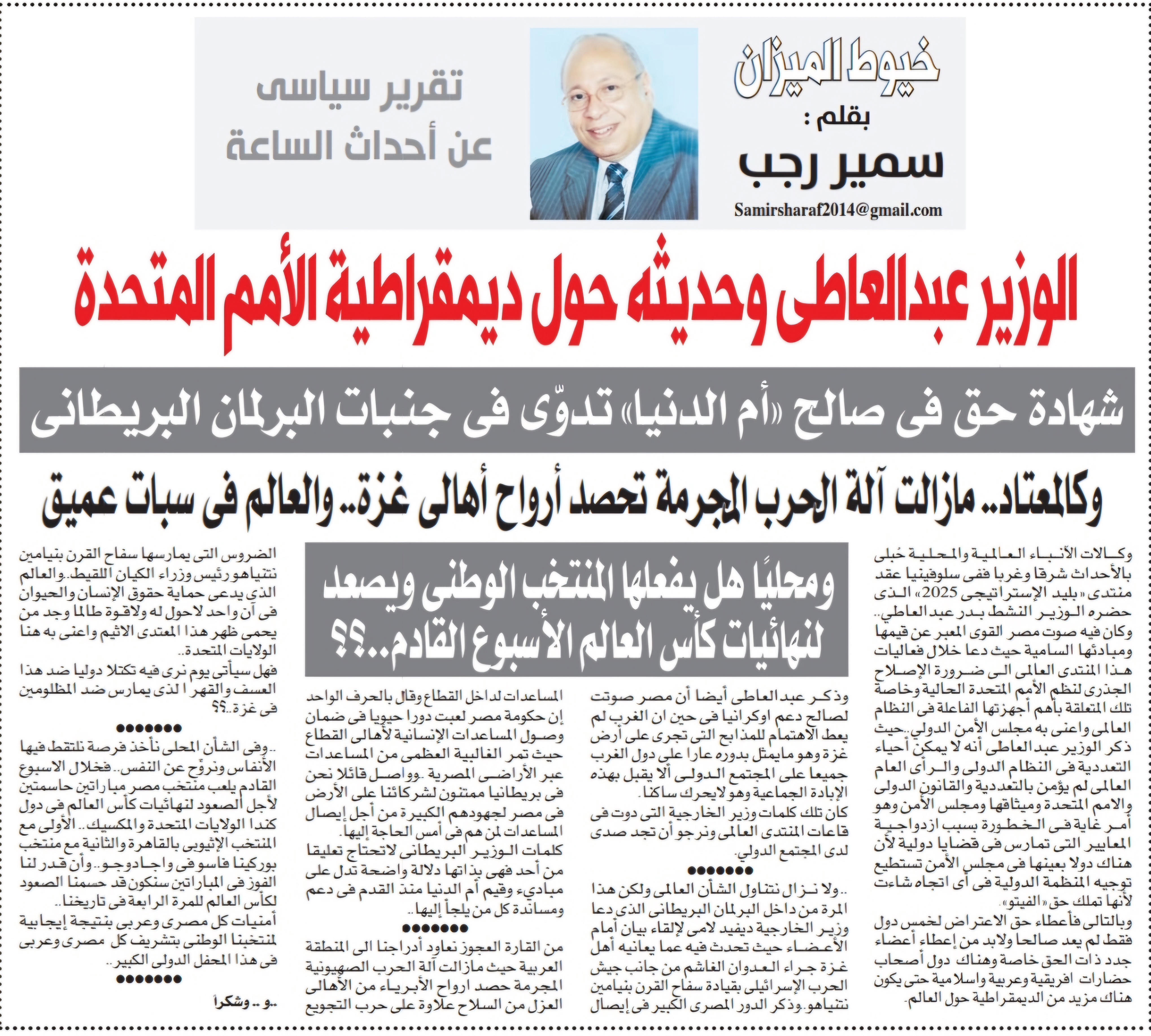 مقال سمير رجب "خيوط الميزان" بجريدة الجمهورية