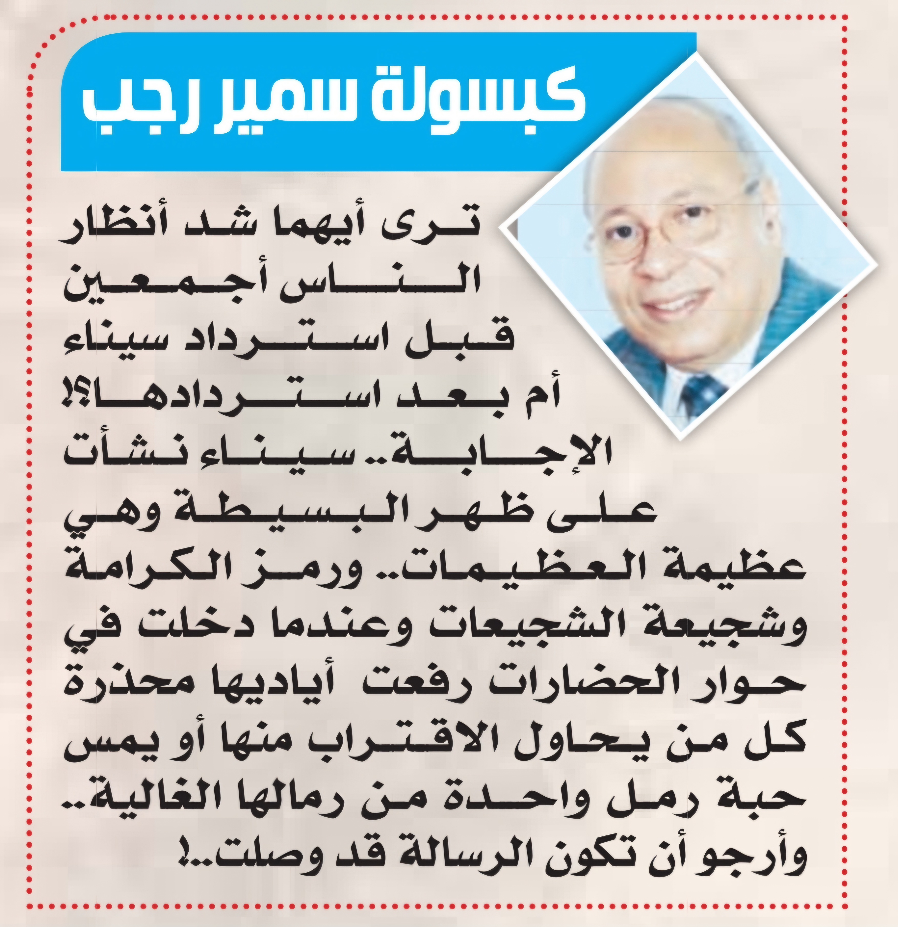 ترى أيهما شد أنظار الناس أجمعين قبل استرداد سيناء أم بعد استردادها؟!